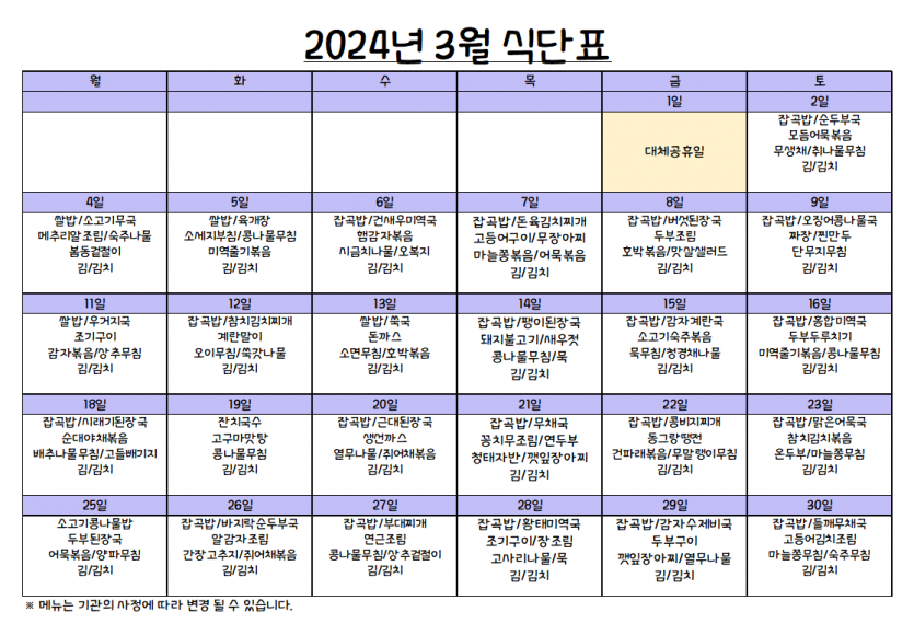 3월 식단표 페이지 정보 작성자 강숭 댓글 0건 조회 1,108회 작성일 24-03-04 12:22 목록 답변 본문 3월 식단표입니다 이전글3월 프로그램표 24.03.04 다음글2월 프로그램표 24.02.05 댓글 0 댓글목록 등록된 댓글이 없습니다.