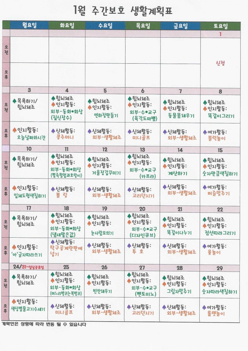 1월 프로그램표 페이지 정보 작성자 강숭 댓글 0건 조회 1,177회 작성일 22-01-03 10:34 목록 답변 본문 1월 프로그램표입니다 이전글1월 식단표 22.01.03 다음글12월 식단표 21.11.30 댓글 0 댓글목록 등록된 댓글이 없습니다.
