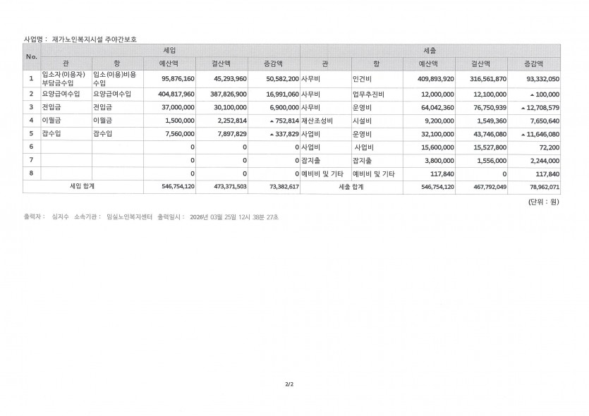 2025년 임실노인복지센터 결산표(주간보호) 페이지 정보 작성자 tntntn 댓글 0건 조회 19회 작성일 26-03-25 12:49 목록 답변 본문 . 다음글2025년 임실노인복지센터 결산총괄표 (방문요양, 재가노인복지서비스) 26.03.25 댓글 0 댓글목록 등록된 댓글이 없습니다.