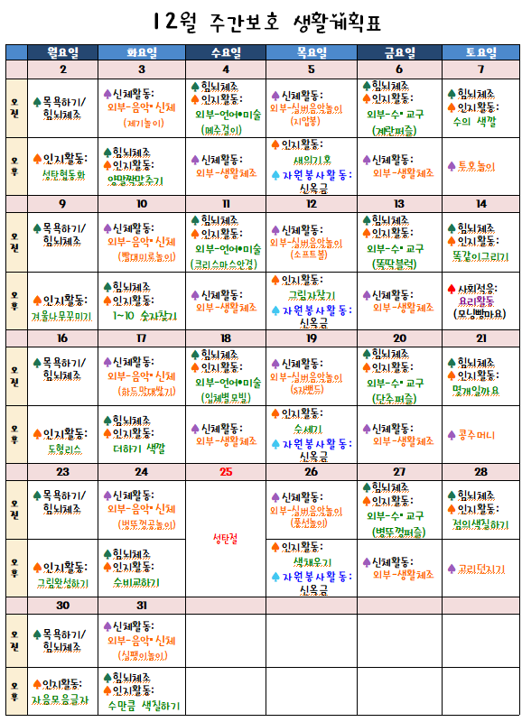 12월 프로그램표 페이지 정보 작성자 강숭 댓글 0건 조회 430회 작성일 24-12-02 11:08 목록 답변 본문 12월 프로그램표입니다 이전글12월 식단표 24.12.02 다음글11월 식단표 24.11.01 댓글 0 댓글목록 등록된 댓글이 없습니다.