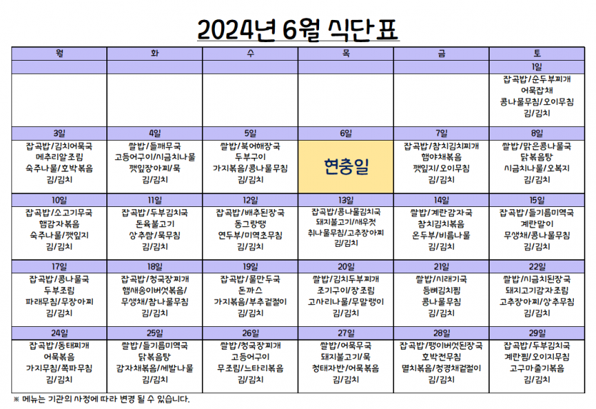 6월 식단표 페이지 정보 작성자 강숭 댓글 0건 조회 1,010회 작성일 24-06-13 11:08 목록 답변 본문 6월 식단표입니다 이전글7월 프로그램표 24.07.18 다음글6월 프로그램표 24.06.13 댓글 0 댓글목록 등록된 댓글이 없습니다.