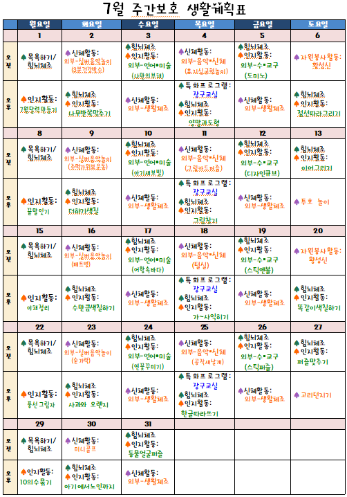 7월 프로그램표 페이지 정보 작성자 강숭 댓글 0건 조회 992회 작성일 24-07-18 10:28 목록 답변 본문 7월 프로그램표입니다 이전글7월 식단표 24.07.18 다음글6월 식단표 24.06.13 댓글 0 댓글목록 등록된 댓글이 없습니다.
