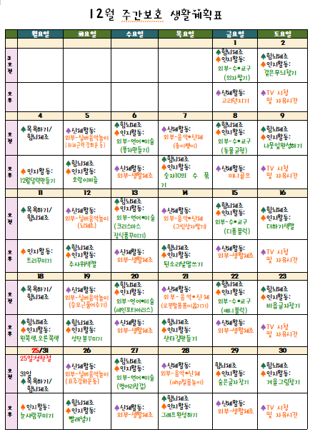 12월 프로그램표 페이지 정보 작성자 강숭 댓글 0건 조회 1,072회 작성일 23-12-01 15:00 목록 답변 본문 12월 프로그램표 입니다 이전글1월 식단표 24.01.02 다음글12월 식단표 23.12.01 댓글 0 댓글목록 등록된 댓글이 없습니다.