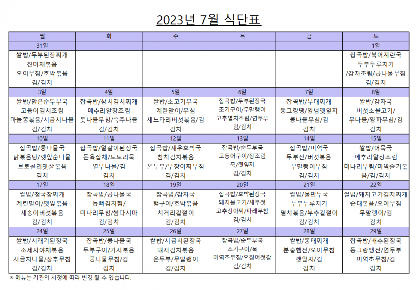 7월 주간보호 식단표 페이지 정보 작성자 강숭 댓글 0건 조회 886회 작성일 23-07-18 13:34 목록 답변 본문 7월 주간보호 식단표입니다 이전글7월 주간계획표 23.07.18 다음글6월 주간보호 생활계획표 23.06.02 댓글 0 댓글목록 등록된 댓글이 없습니다.