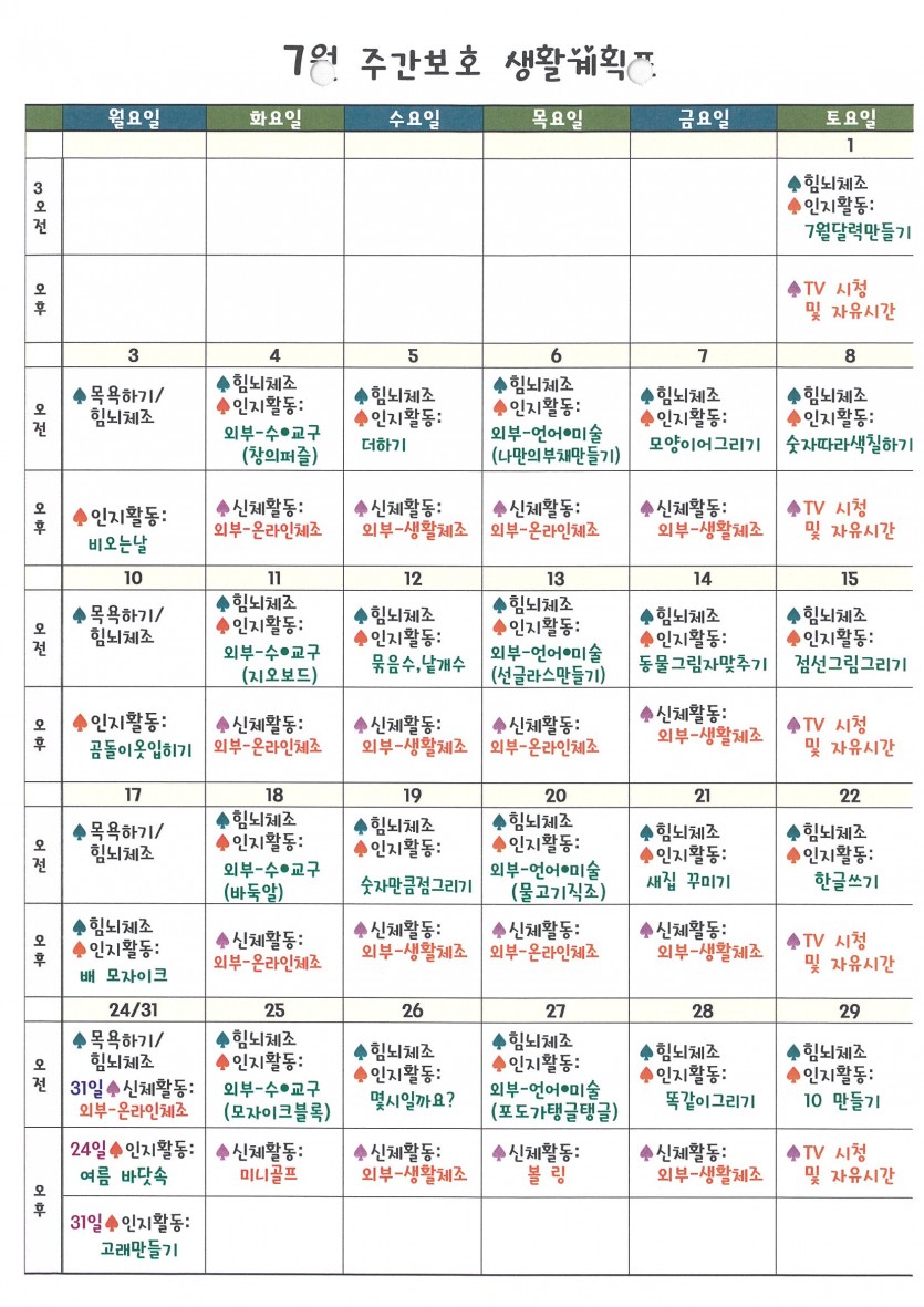 7월 주간계획표 페이지 정보 작성자 tntntn 댓글 0건 조회 967회 작성일 23-07-18 13:37 목록 답변 본문 . 이전글8월 식단표 23.08.01 다음글7월 주간보호 식단표 23.07.18 댓글 0 댓글목록 등록된 댓글이 없습니다.