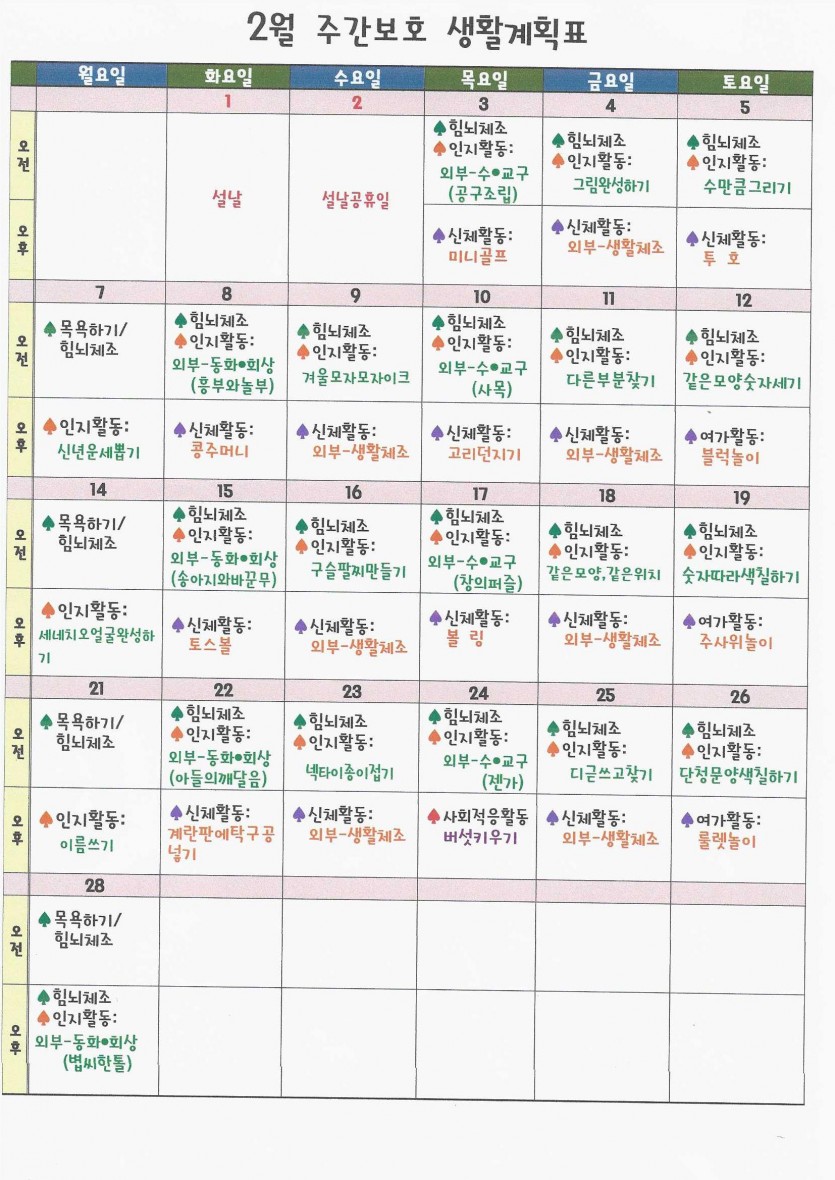 2월 프로그램표 페이지 정보 작성자 강숭 댓글 0건 조회 1,067회 작성일 22-02-03 10:49 목록 답변 본문 2월 프로그램표입니다 이전글3월 프로그램표 22.03.03 다음글2월 식단표 22.02.03 댓글 0 댓글목록 등록된 댓글이 없습니다.