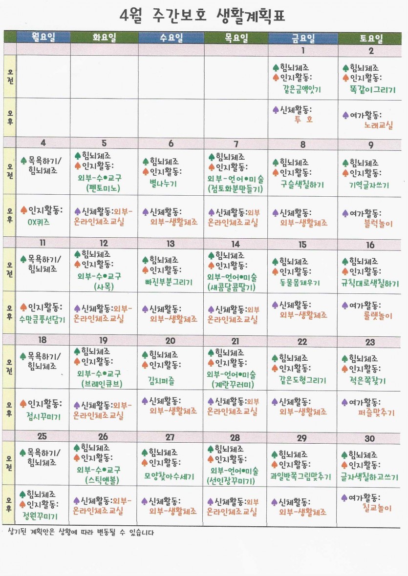 4월 프로그램표 페이지 정보 작성자 강숭 댓글 0건 조회 1,025회 작성일 22-03-31 14:53 목록 답변 본문 4월 프로그램표입니다 이전글5월 식단표 22.05.02 다음글4월 식단표 22.03.31 댓글 0 댓글목록 등록된 댓글이 없습니다.
