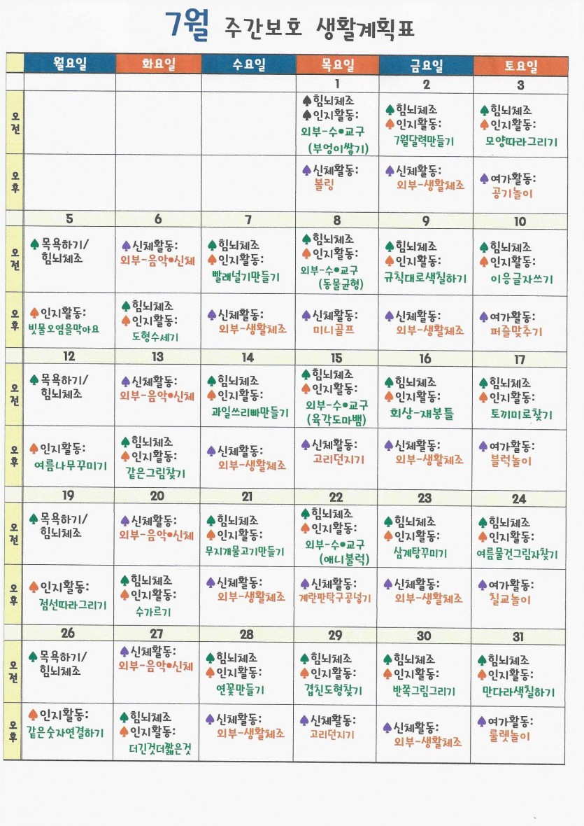 7월 프로그램표 페이지 정보 작성자 강숭 댓글 0건 조회 1,117회 작성일 21-07-06 12:53 목록 답변 본문 7월 프로그램표 이전글8월 프로그램표 21.08.02 다음글7월 식단표 21.07.06 댓글 0 댓글목록 등록된 댓글이 없습니다.